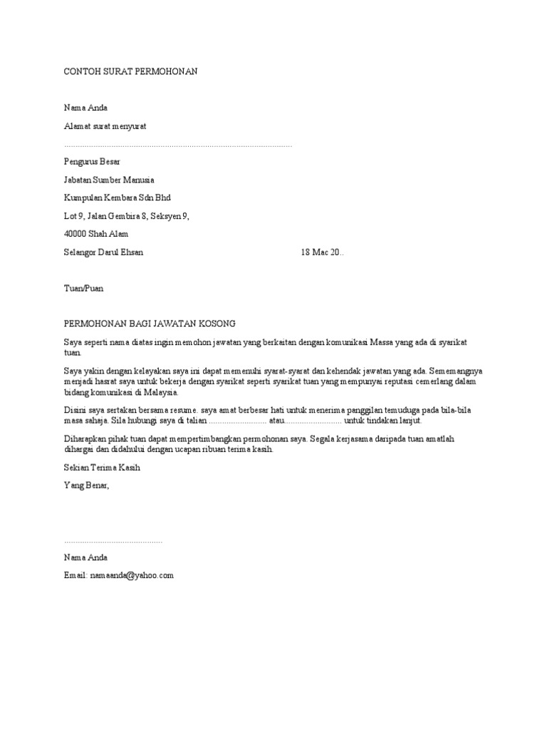 Contoh Surat Memohon Kerja Pdf